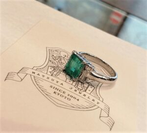 内容:PTエメラルドリングのサイズ直し(仕上げ込)と石の緩み直しです。